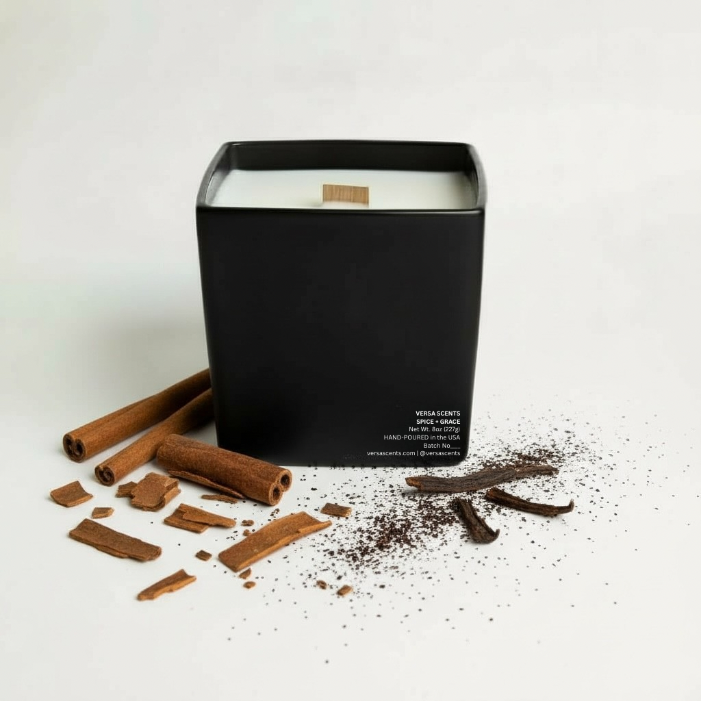 Comfort wrapped in elegance. Spice + Grace blends warm spices with silky cream and soft vanilla, creating a smooth, graceful scent that feels both cozy and refined.
