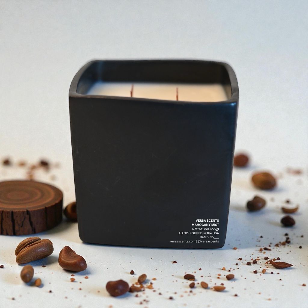 As it burns, Mahogany Mist settles into a smooth floral heart, wrapped in soft woods and a touch of musk. The result is comforting and composed—rich without excess, familiar yet elevated.