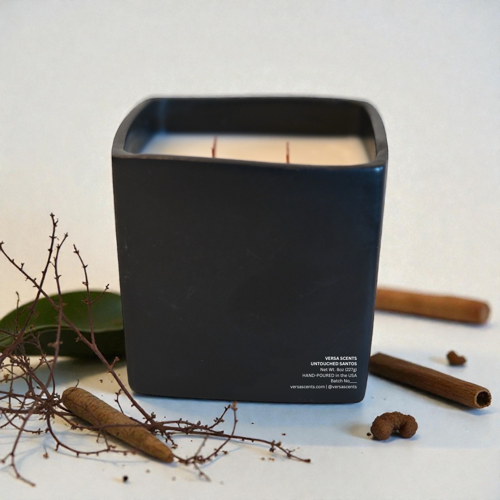 Untouched Santos is an earthy composition built around ritual and calm. It opens with soft greenery and quiet citrus—cool moss and bergamot layered with a faint floral air that feels clean rather than sharp.